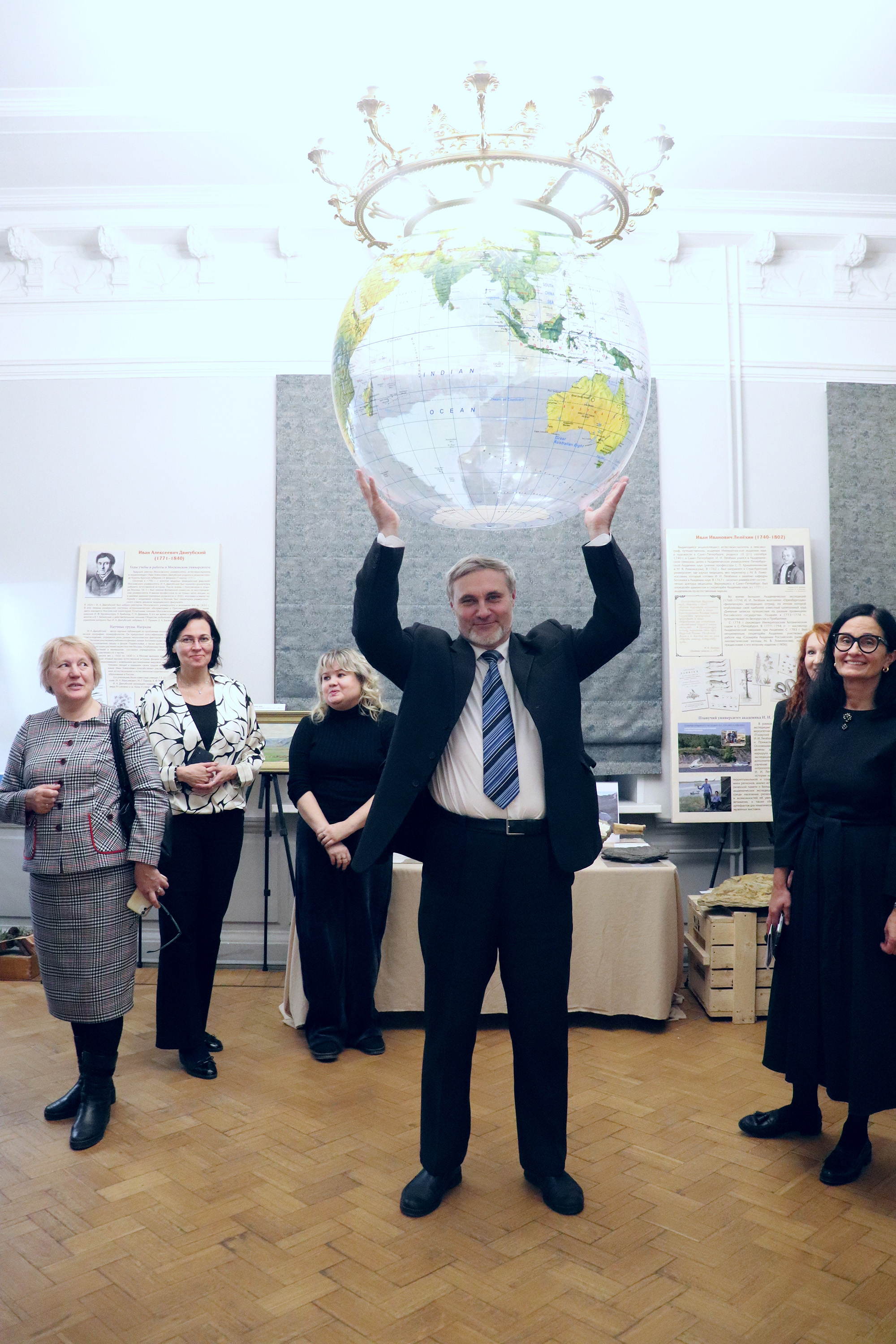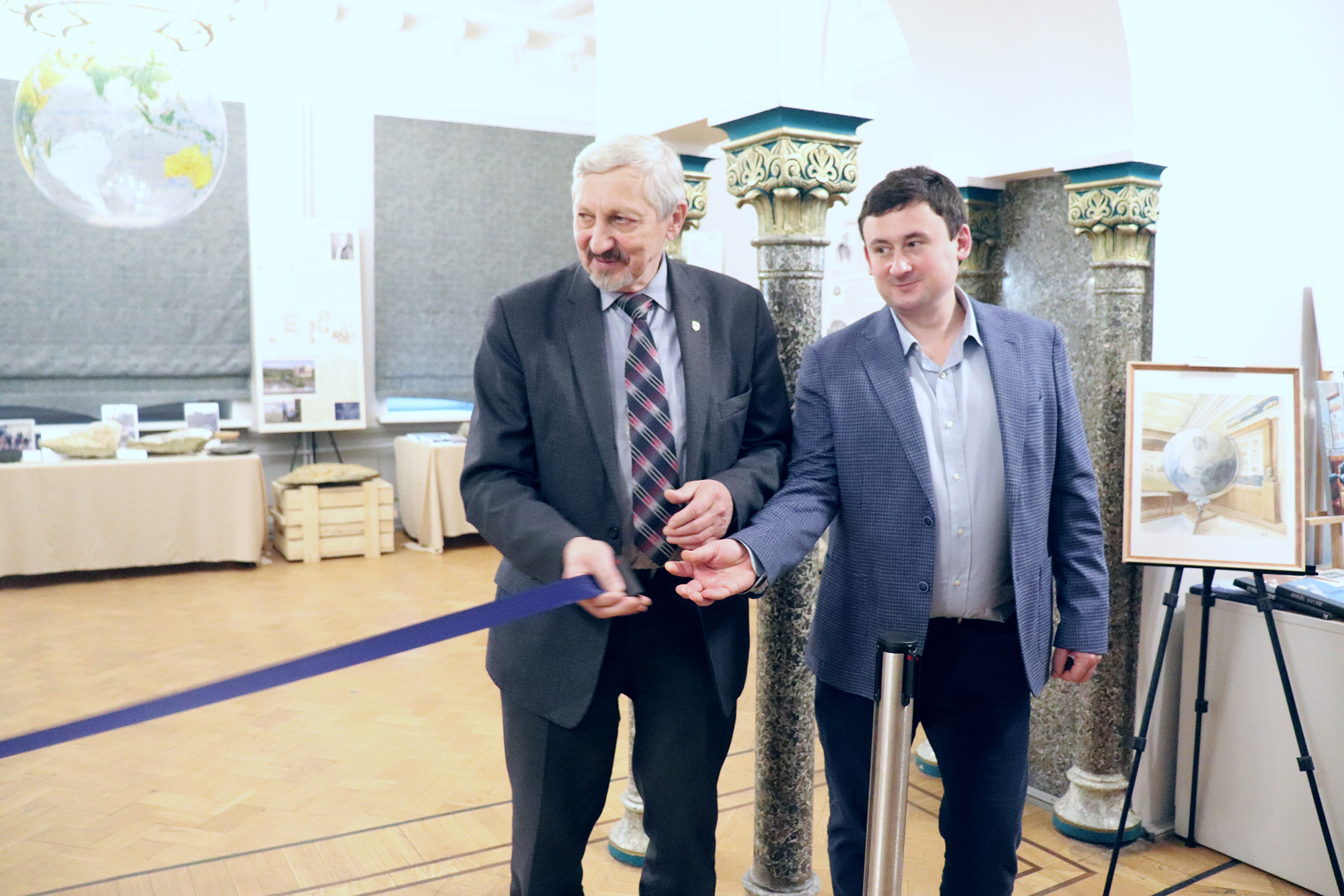 Директор Музея землеведения МГУ профессор Андрей Валерьевич Смуров в своем приветствии подчеркнул: «Выставка не совсем обычная, она отражает ту теснейшую связь между библиотечным делом, между музейным делом и между наукой. Неизбежно естественные науки связаны с созданием коллекции, созданием того материала, который служит базой для науки, базой для научных открытий, и, конечно, именно на основе натурных коллекций пишутся самые замечательные статьи.