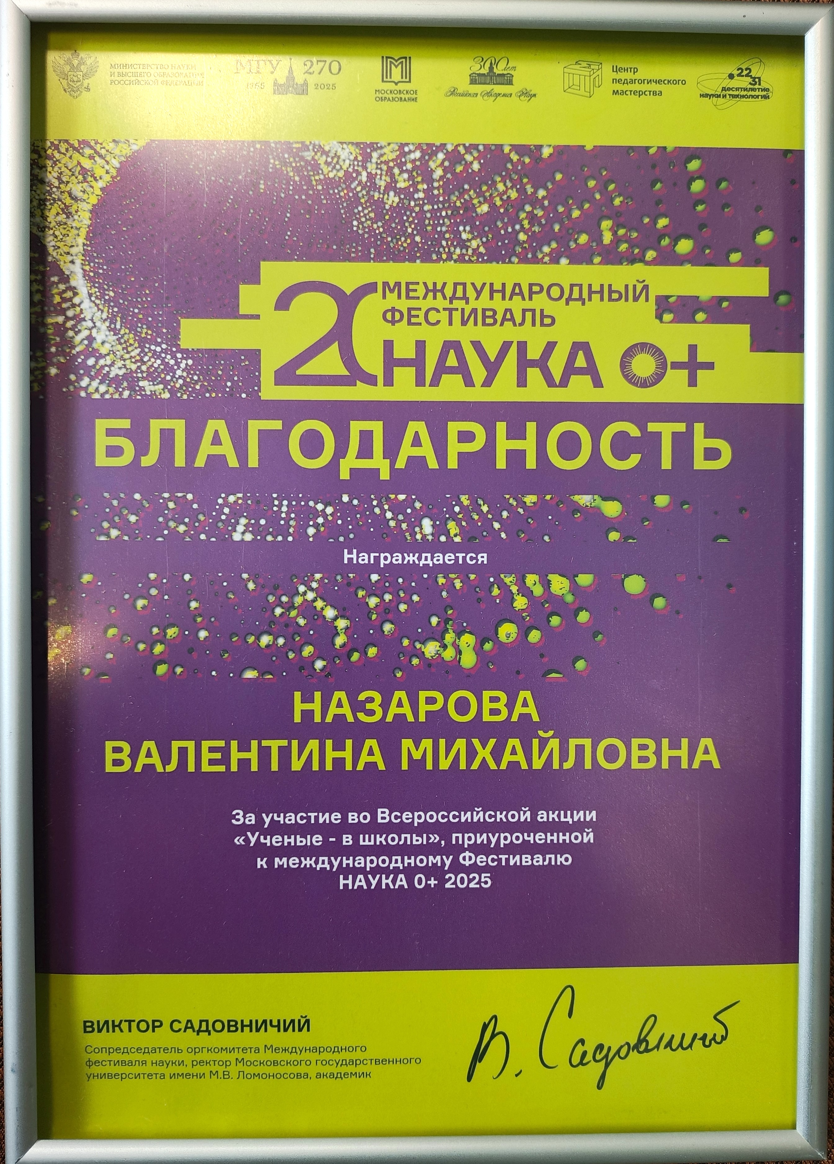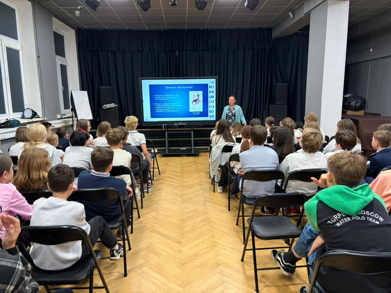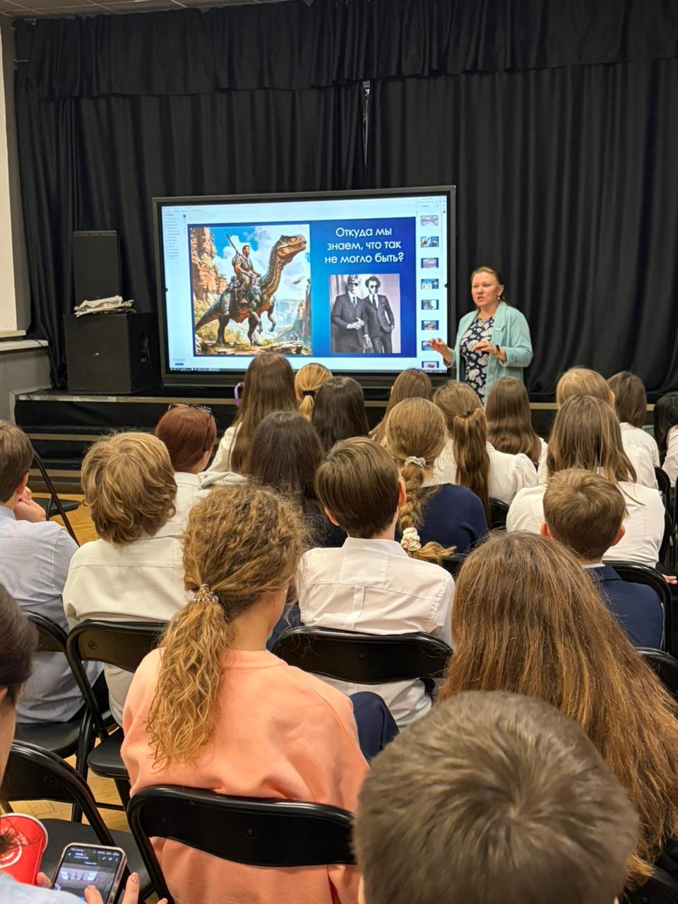 В среду 15 октября 2025 года к.г.-м.н., старший научный сотрудник Музея землеведения МГУ Назарова Валентина Михайловна в рамках акции «Ученые в школы» прочла лекцию «Время в палеонтологии» в школе №2086 города Москвы для учеников 6-7 классов. На лекции присутствовало 80 человек. Слушатели узнали, как определяют время существования ископаемых организмов и событий древности, по каким принципам формировалась геохронологическая шкала, откуда мы знаем, что динозавры и люди не жили одновременно.