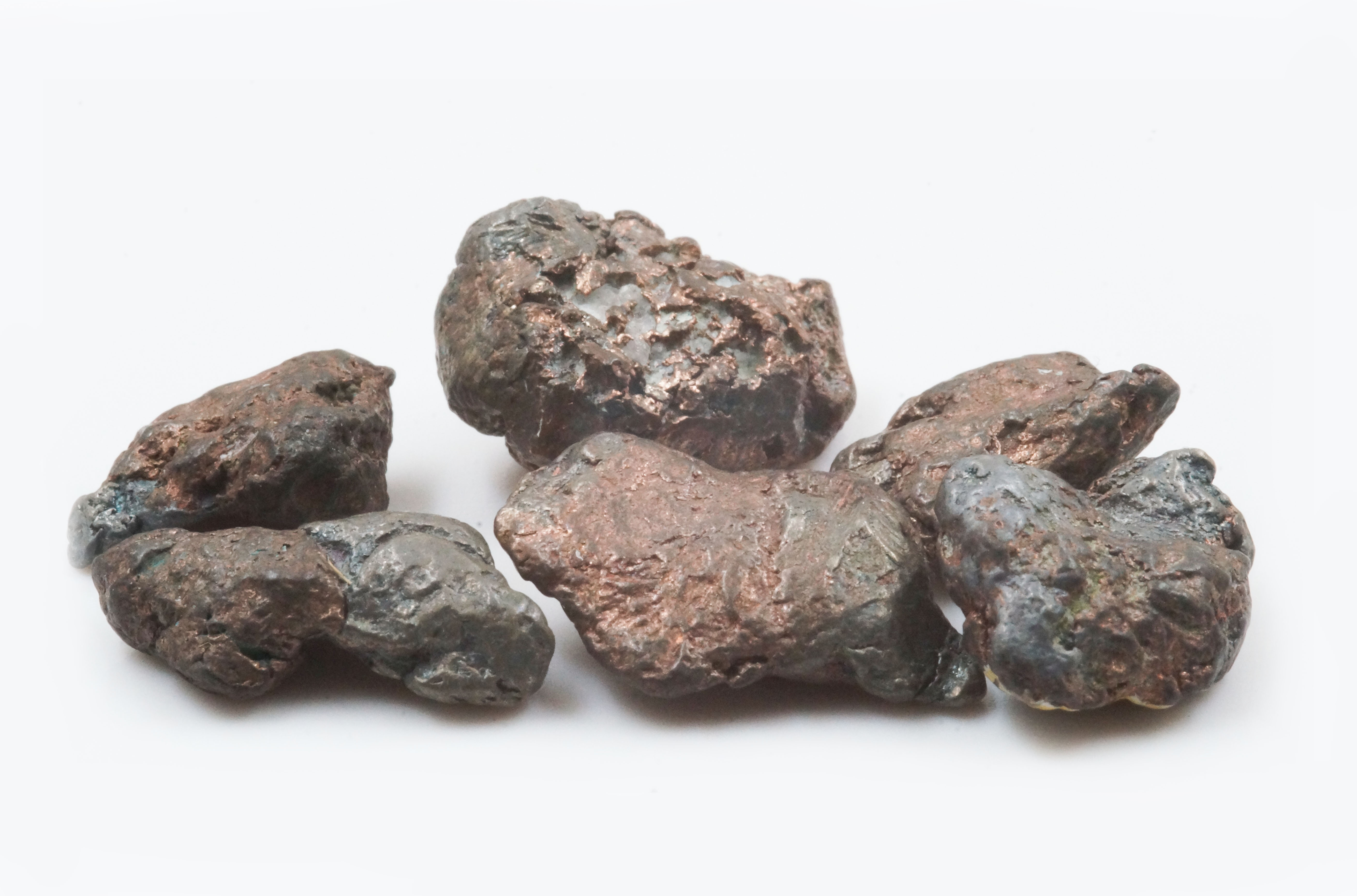 - На слюдистом сланце ОФ 155 (323г; 96,3х63,3х39мм), Богемия, ЧССР, от Новочеркасского политехнического института, 1955г. 8. Медь и серебро самородные, сростки. ОФ 760, (30,1г; от 11,6х10,4мм до 18,2х13,3мм), Мичиган, США